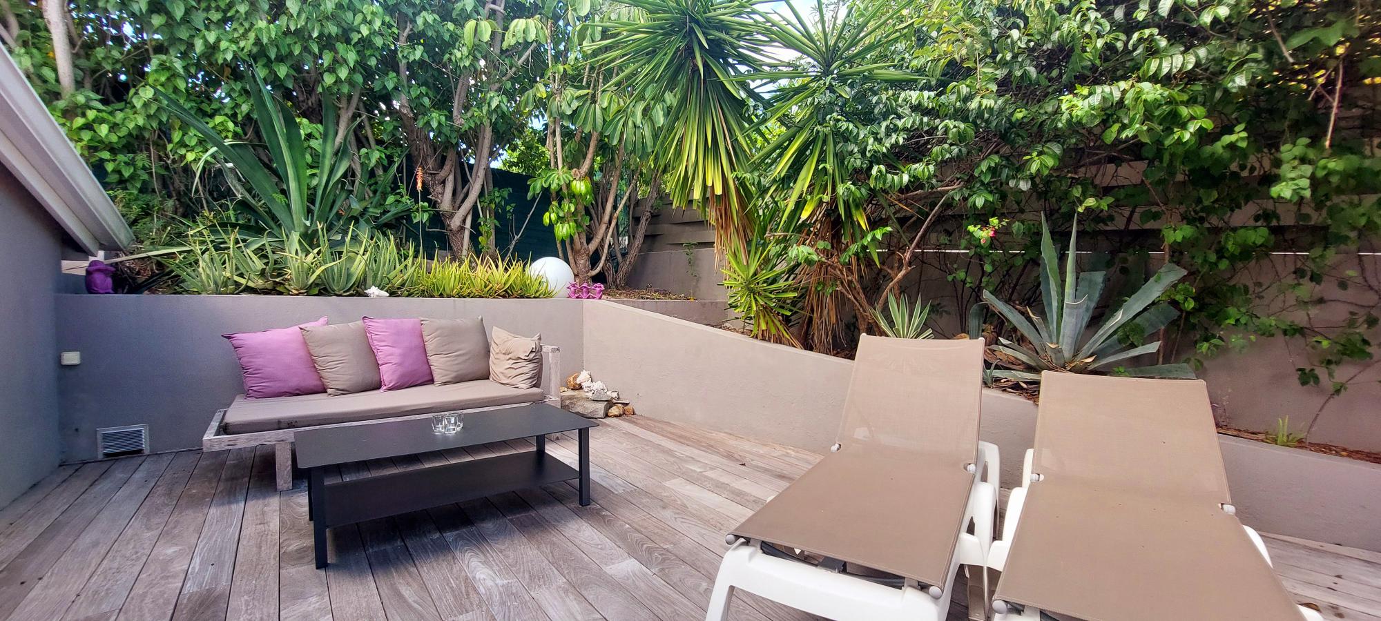Living in Saint Martin means both living outside and inside, O purple is a living space on its own: You'll love snuggling in the cushions of the lounge while sipping a fresh drink, sun bathing in the deck chairs, or basking in the sun whiling having breakfast.